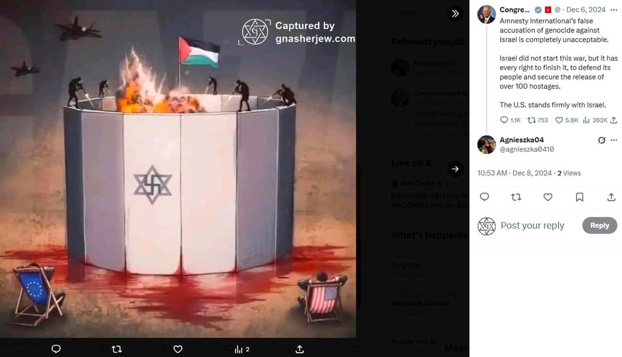 In another video, she promoted the “genocide” libel, which is unfounded and amounts to a modern form of the medieval blood libel. She equated Israel’s military actions in Gaza to the Holocaust and compared Jews to the Nazis. Such comparisons are deeply offensive to Jews and are considered antisemitic under the IHRA definition of antisemitism.