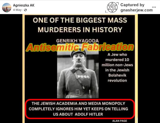 Note: The accusation that “a Jew murdered 10 million non-Jews in the Jewish Bolshevik Revolution” is a complete fabrication.