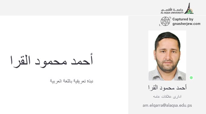 - Journalistic Association: The Committee to Protect Journalists identified Ahmed Al-Qarra as a photojournalist who worked for Al-Aqsa University—a classification echoed by the United Nations Educational, Scientific and Cultural Organization (UNESCO). In reality, Al-Qarra was the public relations administrator at the university, and he also taught social media and digital photography courses there.