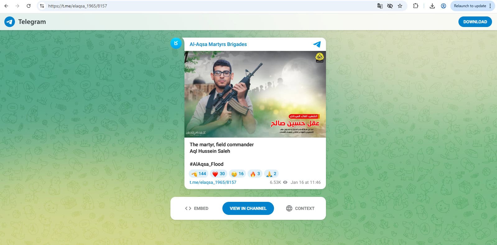 Leader of the Al-Aqsa Martyrs Brigades’ War Media | Jabalia refugee camp, Gaza