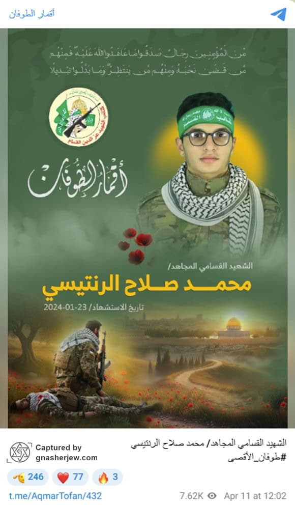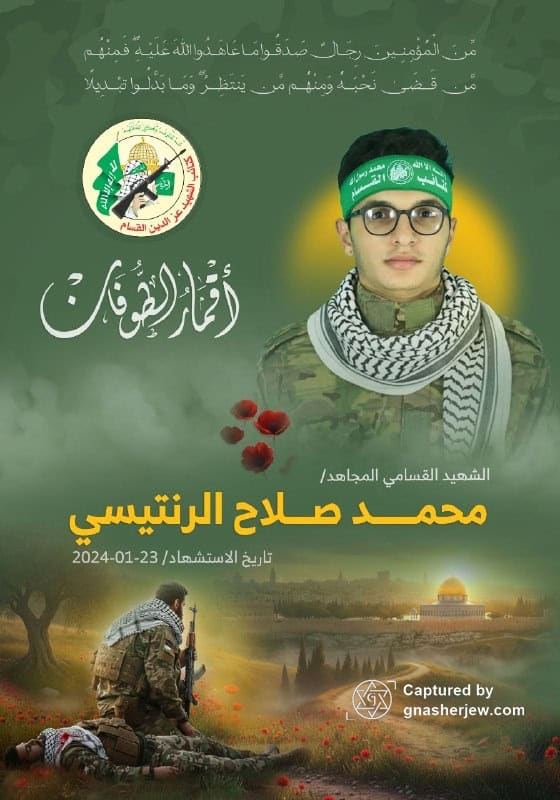 - Militant Affiliation: Tributes and eulogies acknowledge Mohammed Salah al-Rantisi as a fighter and “one of the young heroes of Al-Qassam’s military media.”